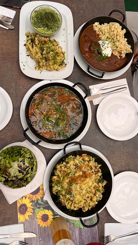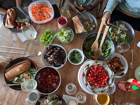 While my relationship with food is now one of my key personality traits, it’ll never be perfect. In the latest season of The Bear, an entire half of episode 3 is devoted to shots of Sydney eating her way through Chicago. It’s supposed to be beautiful, beautiful food, with noodles and doughs and soups and spring onions and fries and meats of all cuts and sizes. I remember relishing with her for the first meal, but growing increasingly sick with each new dish set in front of her, with every up-close shot of her chewing and thinking and eating. The sight of someone ingesting so much food in one day, even in the name of research and inspiration, felt like too much for my tender past.